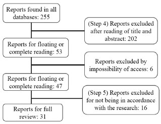 RESULTS AND DISCUSSION The search for the articles was conducted in WoS, and then in ERIC and SciELO databases, using the terms according to the Methodology section, from the period of 1989 to October 2020. The sequence of evaluation and selection of reports is described below in Figure 1, it shows in detail the steps 4 and 5 of systematic review. For the article to be chosen, it needed to present explicitly a sentence with some misconception concerning covalent bonds. We analyzed all 31 articles and extracted the misconceptions from them, according to step 6, finding 253 sentences classified as misconceptions. Most sentences taken from these articles were very similar or represented the same idea. All sentences, in its original form, can be found in Supplementary Material. For the review classification into epistemological themes, all sentences were rewritten in more general sentences, so we could work with a smaller number of sentences. We separated them into topics (energy, polarity, orbitals, hybridization etc.), then we looked for similar words in the sentences or the same idea written in different ways, in order to rewrite new sentences. These "new sentences" are not completely new, they can be, for example, a very similar sentence (from the articles) modified to exemplify those misconceptions.