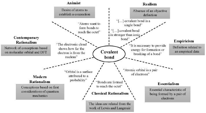 ![]() Figure 2. Scheme of epistemological themes and main conceptions regarding the covalent bond
