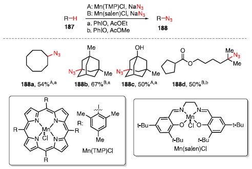 ![]() Esquema 39. Azidação C-H utilizando catalisadores de manganês