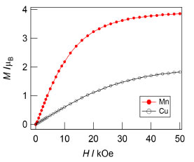 ![]() Figure 7. Isothermal magnetization at 2 K of [{Cu(hfac)2}2L2]n and [CuMn(hfac)4L2]n