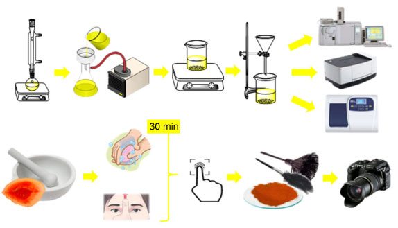 ![]() Figura 1. Diagrama esquemático da obtenção dos compostos através da síntese e utilização como reveladores de impressão digital