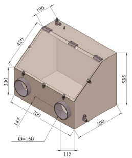 ![]() Figure 1. Glove box dimensions (in millimeters). Internal volume: 135 liters