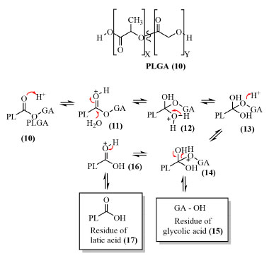 ![]() Figure 6. Mechanism of PLGA cleavage in acid medium for drug release11,60