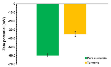 ![]() Figure 6. Zeta Potential values for the different curcumin samples nanostructured in CAGE-IL (average ± s, n=3), obtained by microelectrophoretic analyses via dynamic laser light scattering (DLS)