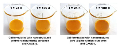 | Nanostructured curcumin with choline and geranic acid ionic liquid (CAGE-IL): potential for incorporation into pharmaceutical gel formulations |