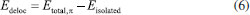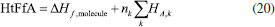 Bond energy from bond length Bond energy is related to geometry-based aromaticity indices and is estimated from the bond length. For benzenoid hydrocarbon molecules, Krygowsky et al.28 has developed a model that relates the bond energy, E(i), calculated directly from the bond length as: ![]() where R(1) and E(1) are the bond lengths of a single bond and its associated energy, respectively; R(i) and E(i) are the investigated bond lengths in the molecule and its related energy, respectively; and α′ is an empirical constant that can be calculated according to the reference bond lengths and bond energies that correspond to the single and double bonds. Generalization of the above formula to aza aromatic molecules was performed by considering the CN and NN bonds in addition to CC bonding. The REC can be obtained by summing E(i) for all bonds in a ring of the molecule, as follows. ![]() whereas the MEC can be obtained by summing over the molecule. Considering the carbon and hydrogen bonds in the molecule, one can obtain the total bond energy of the molecule: ![]() This value can be compared with the experimental data for the heat of formation from atoms (HtFfA),28 ![]() where ΔHf,molecule is the heat of formation of the corresponding molecule; and HA is the heat of atomization; additionally, summation (k) is performed for all atoms that make up the molecule.