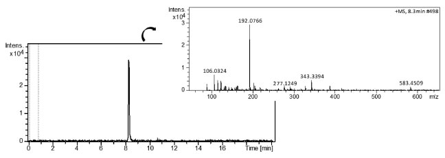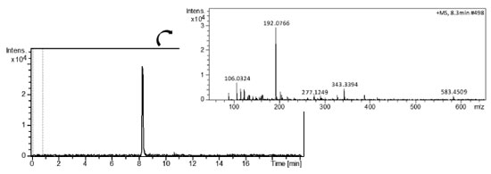 ![]() Figure 3. LC-HRMS chromatograms for white grape juice containing carbendazim at 109 µg L-1 in the positive sample