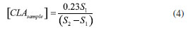 After confirming the normality assumption (p-value > 0.05) in observations, the paired t-test was performed to compare the determinations of both methods. The p-value obtained was 0.14, so that concludes that at a level of 95% confidence do not have statistical differences between these two approaches to quantify CLA isomer cis-9, trans-11 content in milk samples.
