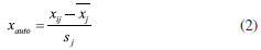 As informações entre parênteses representam os dados de entrada (input), onde o parâmetro X representa a matriz com os dados e, neste exemplo em específico, as dimensões são 1000:12288. Já os parâmetros NP, NL e NC representam o número de pulsos por ponto, número de linhas e o número de colunas, respectivamente. No exemplo da Figura 1(b) temos que NP, NL e NC são 10, 10, e 10, respectivamente. Como dado de saída (output) temos o parâmetro MATRIZ que representa a matriz X inicial com a direção correta da obtenção dos dados. A segunda rotina é denominada data_pre e tem como objetivo calcular a média aritmética, desvio padrão e realizar o pré-processamento dos dados: centrar na média e autoescalar. A linha de comando da data_pre é: