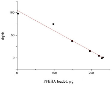 ![]() Figure 4. Langmuir isotherm model for PFBHA loading in the unbiased