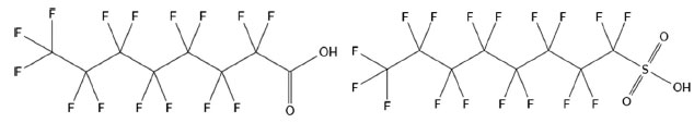 Em função do tamanho da cadeia carbônica, os PFAAs podem ser classificados em: cadeia longa, que se refere a PFCAs com 7 ou mais átomos de C perfluorados e PFSAs com seis ou mais C perfluorados, enquanto os PFCAs e PFSAs que possuem menos de 7 e 6 carbonos perfluorados, respectivamente, são classificados como PFAAs de cadeia curta. A diferença entre o número de C limiar dos PFCAs (7) para os PFSAs (6), está relacionada à maior capacidade de bioacumulação deste último grupo, quando comparados a PFCAs com mesmo número de C (OECD, 2016). Para os demais PFAS, que não PFAAs, considera-se a presença de 7 ou mais C perfluorados como cadeia longa.17 Os PFAS podem ser lineares ou ramificados, sendo que para os lineares existe apenas um congênere e para os ramificados pode haver vários congêneres devido às diversas possibilidades de ramificação da cadeia principal. Por exemplo, para o PFOS são possíveis 89 congêneres ramificados, embora no ambiente o mais comum seja a detecção de uma mistura do isômero linear e apenas outros 10 isômeros ramificados.19,20