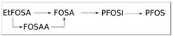 ![]() Figura 2. Representação da degradação da sulfluramida proposta por Avendaño e Liu.76 EtFOSA: N-etil perfluorooctano sulfonamida; FOSA: perfluorooctano sulfonamida; FOSAA: ácido acético perfluorooctano sulfonamida; PFOSI: perfluorooctano sulfinato; PFOS: ácido perfluorooctânico sulfônico