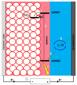 Para a escolha do corante sensibilizador é importante levar em conta alguns fatores, como: a presença de grupos de ancoragem (−COOH, −H2PO3, −SO3H, etc.) que os permitam se ligar na superfície das nanopartículas do semicondutor; orbital LUMO (lowest unoccupied molecular orbital) maior que o limite da banda de condução dos semicondutores, para que ocorra transferência de energia e potencial de oxirredução do corante maior que o do eletrólito.12,27 Além disso, os corantes ideais devem ser fotoestáveis, apresentarem estabilidade térmica e possuir um espectro de absorção que cubra uma parte significativa da região visível do espectro eletromagnético, para melhor aproveitamento da energia solar.27,32 Trabalhos desenvolvidos na área A criação de programas educativos acerca das energias renováveis tem sido difundida desde a crise do petróleo em 1970, objetivando conscientizar os estudantes em relação as questões ambientais e econômicas, além de incentivar o desenvolvimento de fontes renováveis.33 Vários autores da área da educação destacam a importância da inserção dos estudantes no cenário da problemática energética. Quando as temáticas ambientais são introduzidas desde a infância à educação média, a probabilidade dessa orientação ser efetiva é muito maior, pois tais conceitos são internalizados como um estilo de vida.34 Agnaldo et al. experimentaram uma proposta para o ensino de física baseada na produção e caracterização de uma célula solar de Grätzel. O corante natural e o material utilizado foram de baixo custo, uma vez que o intuito da prática foi didático. Foi possível introduzir os mecanismos físicos envolvidos, como o ciclo do elétron, processos regenerativos, injeção de elétrons, geração de fotocorrente, entre outros. Os autores consideram essa experimentação como motivadora.30 Segundo Sonai et al.,8 a temática das energias renováveis, com foco na energia solar, é importante principalmente levando-se em conta a crise enérgica nacional e mundial. Abordar as CSSC com os estudantes possibilita a eles reconectarem-se ao conteúdo e materiais já estudados, explorando diversos conceitos como ligações químicas, reações de oxirredução, processos de absorção de luz e transferência de elétrons, propriedades dos semicondutores, entre outros. Pensando nisso, Nogueira et al. também executaram uma aula prática, com duração de 8 h, realizando a montagem de células solares sensibilizadas por vários tipos corantes naturais extraídos durante a aula. Os estudantes analisaram todo o funcionamento e montagem, calcularam as eficiências e traçaram as curvas de corrente vs. potencial. Para os autores, esse experimento se sobressai devido seu caráter interdisciplinar, abordando, especialmente, os conteúdos de química inorgânica e físico-química.8 Mayrinck et al.12 relataram uma experimentação didática envolvendo o estudo e preparação das CSSC, atingindo bons resultados na aprendizagem com estudantes de diversos cursos de graduação. O objetivo do trabalho foi avaliar o potencial didático da proposta, por meio da aplicação de questionários anteriores e posteriores a minicurso de preparação de CSSC. Foram utilizados materiais alternativos adaptados, considerando o baixo custo e a disponibilidade. Os autores ressaltam o caráter interdisciplinar do tema e a viabilidade da sua execução fora do laboratório. Inicialmente, a maioria dos estudantes declarava ter conhecimento ruim ou regular relacionado à energia solar. Ao final do minicurso, esse resultado passou para bom e muito bom. Os autores consideram a prática como ideal para aplicação em cursos de graduação.12 Já Chien35 e Csernovszky36 trouxeram propostas didáticas experimentais para o ensino de química e física a partir da construção de CSSC funcionais utilizando métodos e materiais alternativos. Chien et al. trabalhou com o desenvolvimento de CSSC com estudantes do Ensino Médio, em que um dos principais destaques dessa produção foi a selagem alternativa com ferro elétrico de passar roupas, que ao final se mostraram operantes ao acionar pequenos ventiladores de plástico em mais de 80% das reproduções executadas pelos estudantes.35 A proposta de Csernovszky et al. focou-se, principalmente, em explorar o conteúdo de física acerca das CSSC, argumentando que o mecanismo relativamente simples destas células pode facilitar a compreensão de reações mais complexas, como a fotossíntese, ao utilizar de um efeito comparativo. Csernovszky et al. ainda abordaram diversos outros conteúdos físicos disponíveis nessa prática como estudos do fenômeno de absorção e avaliação da potência máxima dos dispositivos.31 Christ et al.37 desenvolveram uma metodologia simples para a montagem de células solares sensibilizadas por corantes naturais extraídos da beterraba, repolho roxo e urucum. Para isso, propuseram a utilização de materiais de baixo custo na fabricação dos dispositivos, como o eletrodo, retirado de uma calculadora, e a fonte de TiO2 sendo um corretivo líquido à base de água. Os autores aplicaram o experimento com alunos do primeiro semestre do curso Técnico em Química do Instituto Federal do Rio Grande do Sul. A célula solar montada conseguiu converter luz solar em corrente elétrica, demonstrando a capacidade do experimento para introduzir o conceito de CSSC utilizando materiais do cotidiano.37 A área da química, assim como a ciência da natureza no geral, ainda carece de disseminação de métodos de ensino que estimulem a participação e o aprendizado dos alunos em temas interdisciplinares de contexto tecnológico. O uso de estratégias alternativas, como os jogos didáticos, pode contribuir positivamente para alcançar objetivos relacionados ao desenvolvimento de habilidades cognitivas e sociais, afinidade com a ciência e representa principalmente um fator motivador.38