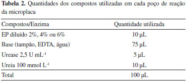 O ácido acético foi identificado na análise cromatográfica de todas as amostras (Tabela 4). Conforme já estabelecido na literatura,27 o ácido acético é o principal componente do EP e sua proporção em média varia entre 3-7% m/m, enquanto as frações fenólicas variam de 1-3%.48 São diversas as propriedades benéficas do ácido acético para agricultura, conforme apresentado na Tabela 4. Nos trabalhos realizados por Yatagai et al.,55 o ácido acético demonstrou ser um dos compostos termiticidas mais potentes do EP, embora vários outros ácidos (ácido propanoico e valérico) e compostos fenólicos (4-etil-2-metoxifenol; o-cresol; o-etil-fenol) também apresentem essa atividade.55 É sabido que os compostos fenólicos extracelulares desempenham funções importantes nas plantas, desde o reforço da parede celular até ações antibióticas e antioxidantes. De acordo com Baker et al.,75 as células de suspensão saudáveis de tabaco e batata têm pools extracelulares significativos de compostos fenólicos que atenuam o estresse oxidativo resultante, por exemplo, do ataque microbiano à planta. O ácido ascórbico e outros antioxidantes fenólicos no apoplasto, junto com as peroxidases, ajudam a regular o potencial redox do apoplasto. De acordo com os autores, é provável que os antioxidantes fenólicos reajam diretamente com a peroxidase e com as espécies de H2O2, enquanto o ácido ascórbico atue regenerando o composto fenólico oxidado. Esse fenômeno tem sérias implicações no que diz respeito aos mecanismos de reação das células vegetais a vários estímulos. Baker et al.72 identificaram a acetosiringona como um dos principais compostos fenólicos extracelulares produzidos pela suspensão de células vegetais de tabaco e demonstraram que este composto está envolvido na aceleração da resposta da planta a infecção bacteriana. A acetosiringona foi também encontrada nas amostras de eucalipto e acácia negra analisadas no presente trabalho. Muitos compostos fenólicos encontrados nas amostras de EP analisadas (Tabela 4) apresentam propriedades antioxidantes e antifúngicas reportadas na literatura, inclusive contra fungos filamentosos patogênicos importantes, como os dos gêneros Fusarium, Aspergillus e Penicillium.60 Entre os compostos fenólicos com propriedades fungicidas, destacam-se os seguintes: isoeugenol, 2-etilfenol, 4-etilfenol, 2-metoxi-4-metilfenol (4-metil-guaiacol), 4-etilguaiacol e salicilaldeído.60 Embora a atividade antifúngica e antimicrobiana do extrato pirolenhoso (EP) esteja normalmente associada aos derivados fenólicos,5,76-78 outros compostos também desempenham um papel importante nesta propriedade. O ácido propanoico encontrado nas três amostras analisadas, por exemplo, tem sido amplamente utilizado em produtos alimentícios como conservante, devido ao seu efeito inibitório sobre o crescimento de microrganismos.79 Nesse sentido, Yun e Lee79 revelaram que o ácido propanoico induz a morte celular de fungos por apoptose mediada por mitocôndrias. Adicionalmente, o furfural é um ingrediente ativo de pesticida que possui propriedades, não apenas fungicidas, mas também nematicidas.58 Ainda, uma patente chinesa (CN102458125B)80 refere-se ao uso de compostos de ciclopentanodiona como inseticidas, acaricidas e/ou fungicidas. Experimentos com rizobactérias do gênero Bacillus mostraram que os voláteis produzidos por essas bactérias eram responsáveis pelo aumento do crescimento49 e pela indução de resistência sistêmica50 nas plantas de Arabidopsis. Esses voláteis foram identificados como acetoína e 2,3-butanodiol. Nas mudas de Arabidopsis expostas a misturas dos voláteis acetoína e 2,3-butanodiol, a gravidade da doença (Podridão-mole) causada pelo patógeno bacteriano Erwinia carotovora subsp. carotovora, foi significativamente reduzida em comparação com mudas não expostas antes da inoculação do patógeno. A exposição aos compostos orgânicos voláteis e rizobactérias por apenas 4 dias foi suficiente para ativar resistência sistêmica induzida em mudas de Arabidopsis. A acetoína foi encontrada em todas as amostras de EP analisadas no presente trabalho (Tabela 4). A grande variabilidade e a atividade sinérgica dos diversos componentes do EP podem dificultar o desenvolvimento de resistência por parte dos microrganismos,81,82 o que torna o EP um produto ainda mais interessante para aplicação na proteção dos cultivos de interesse agrícola. Na indústria alimentícia, segundo Rozum,83 os aldeídos e cetonas alifáticos são responsáveis pela característica corante das fumaças líquidas conferida às carnes através da reação de Maillard, sendo o hidroxiacetaldeído o principal aldeído responsável por esse efeito. Por outro lado, o siringol e seus derivados são os principais responsáveis pelo sabor de defumado e propriedade antioxidante. Embora, o guaiacol, o furfural, o cicloteno, o maltol, as cetonas aromáticas e os aldeídos também desempenhem papéis importantes na composição geral do sabor e aroma conferido ao alimento. Wasserman84 demonstrou que a mistura dos três principais compostos (guaiacol, 4-metil-guaiacol e siringol) nas proporções encontradas no líquido de pirólise não é suficiente para fornecer o aroma defumado característico desejável. Inibição da urease in vitro dos extratos pirolenhoso e seus principais constituintes Após a caracterização, as amostras foram submetidas ao ensaio de inibição da urease in vitro. O efeito inibitório dos EPs sobre a atividade anti-ureolítica revelam um comportamento concentração dependente para a inibição da urease de Canavalia ensiforms (Figura 4). A partir das curvas de inibição em função das dosagens (Figura 4) foi possível calcular a concentração mínima para inibir 50% da urease (IC50), apresentada na Tabela 5.