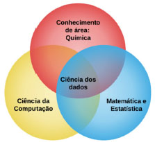 Tal publicação vem ao encontro da Portaria nº 5109 do Ministério da Ciência, Tecnologia e Inovações (MCTI), de 16 de agosto de 2021, na qual define as prioridades de incentivo aos projetos de pesquisa para os anos seguintes (2021-2023). Esta portaria estabelece como prioritário os projetos que envolvam as tecnologias estratégicas, as habilitadoras, de produção, de qualidade de vida, de desenvolvimento sustentável e de promoção, popularização e divulgação da Ciência, Tecnologia e Inovação. O objetivo das "tecnologias habilitadoras" apresentado na referida portaria é "contribuir para a base de inovação em produtos intensivos em conhecimento científico e tecnológico", no qual engloba os seguintes setores: (i) Inteligência Artificial; (ii) Internet das Coisas; (iii) Materiais Avançados; (iv) Biotecnologia; e (v) Nanotecnologia.16 Essas e outras áreas que não foram citadas na portaria, são tidas como "tecnologias habilitadoras" por se tratar de elementos prévios para a formação da Indústria 4.0, em que acelerem o processo de digitalização e promovem a transformação das indústrias. Desse modo, percebe-se uma consonância entre as duas publicações pela chamada da química a participar, por meio da inteligência artificial, por exemplo, para o desenvolvimento de processos que promovam a Indústria 4.0. A pioneira aplicação de inteligência artificial, no campo da química, foi o projeto DENDRAL, desenvolvido em 1965, pela Universidade de Stanford, nos Estados Unidos da América, tendo por objetivo elucidar estruturas de moléculas orgânicas a partir de espectrometria de massa. O uso de inteligência artificial não é tão recente, mas, como proposto por Thomas Pierce e Bruce Hohne, esta tecnologia desceu das "torres de marfim" para transformar nossas práticas científicas.17 Para elucidar estruturas moleculares, um químico precisaria de um arsenal de equipamentos, técnicas e métodos (físicos, químicos, espectroscópicos e via úmida), enquanto o DENDRAL − programa para auxiliar os químicos orgânicos a determinar a estruturas desconhecidas − parte de dados obtidos por um só equipamento.18 De acordo com o químico Johann Gasteiger,11 esse projeto foi encerrado, contudo surgiram diversos programas derivados dele, bem como para diversas outras finalidades, mesmo com a queda da visibilidade da IA nos anos que se seguiram. As possibilidades de aplicação da IA, naquela época, eram (i) criar um microuniverso de dados que pudessem ser processados por softwares de aprendizagem, podendo assim, por exemplo, que tal software encontre o conceito ou processo que se adeque aos dados; e a partir disso, (ii) dar suporte aos químicos nas resoluções de problemas práticos.19 Nesse entendimento, o DENDRAL se encaixa como um dos suportes para os químicos resolverem os problemas de identificação das estruturas moleculares desconhecidas e pode ser considerado como inteligência artificial. O termo inteligência artificial (IA), entendido como o cruzamento de todas as áreas que estavam presentes no simpósio na Dartmouth College,20 foi apresentado pelo matemático John McCarthy, em 1956, na cidade de Hanover. A proposta era que os estudos e a investigação poderiam ser reduzidos e descritos a algo que máquinas poderiam simular, não se tratando apenas de criar algoritmos para leitura, mas também para identificar padrões e extrair conhecimentos.21,22 O escritor e especialista em IA, Lasse Rouhiainen,23 define a IA como "a habilidade dos computadores realizarem atividades que normalmente requerem inteligência humana" e, de acordo com esse autor, o termo inteligência artificial tem causado incômodo em muitas pessoas e uma proposta, feita por Sebastian Thrun, seria chamar a IA como "Ciência dos Dados". A ciência dos dados pode ser entendida como a integração da ciência da computação, com a matemática/estatística e o campo de interesse específico, como as ciências da natureza, por exemplo (Figura 1). Em outro entendimento, a IA trata de técnicas computacionais que mimetizam a inteligência humana.24