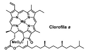 ![]() Figura 1. Representação da estrutura química da molécula da clorofila a