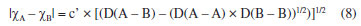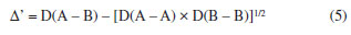 Esperava-se que ∆ assumisse valores positivos já que a energia de ligação de AB seria maior ou igual à média aritmética de A2 e B2, porém isso nem sempre acontecia.6 Nos hidretos alcalinos (MH), se esperava que as ligações tivessem algum caráter iônico do tipo M+H- e Δ aderisse a valores positivos, entretanto a diferença era negativa.6 A partir de um tratamento com respaldo da mecânica quântica, a média que melhor definiria a energia de ligação real, seria dada pela média geométrica e, consequentemente, os valores de ∆ seriam sempre positivos (Δ') (Equação 5).6