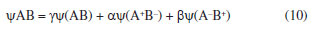 A determinação da eletronegatividade de Robert Sanderson Mulliken7 em 1934 partiu da descrição de função de onda para uma molécula do tipo AB (ψAB) conforme a Equação 10.