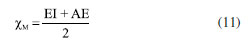 Mulliken analisou os coeficientes junto as contribuições iônicas para a molécula AB e percebeu que as contribuições em energia das partes iônicas (A+B- e A-B+), provavelmente, não demandariam a mesma quantidade em energia para a formação das entidades com densidades de carga diferentes, pois deveria haver um adicional das forças repulsivas atuantes para as duas situações.7 Todavia, assumindo que para grandes distâncias entre os núcleos (r), as energias de formação das contribuições iônicas seriam iguais, Mulliken propôs a eletronegatividade em função das propriedades primeira energia de ionização (EI) e afinidade eletrônica (AE), conforme a Equação 11, de maneira a ser demonstrada empiricamente.7