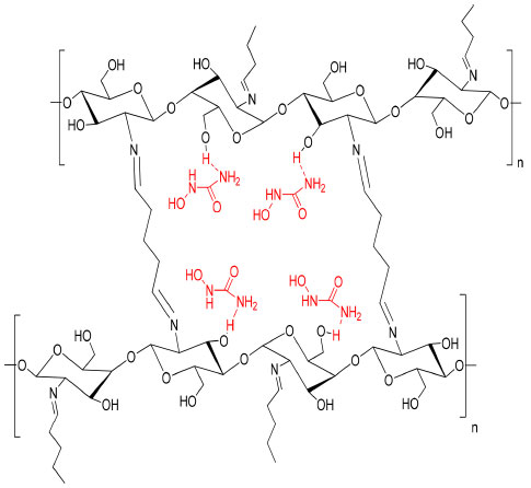![]() Scheme 1. The suggested structure of hydroxyurea embedded in the cross-linked chitosan matrix