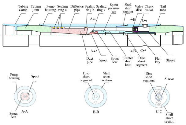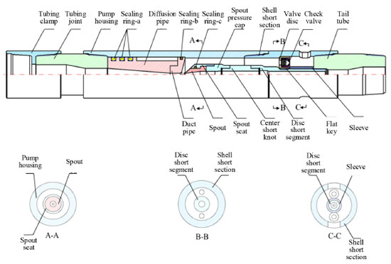 Binnan Oil Production Plant of Shengli Oilfield Co. LTD, 256600 Shandong, China Recebido em: 13/08/2023 *e-mail: liubo202304@126.com With the increasing drilling depth, problems follow, such as the lifting height of the liquid in the well and increased pump operation. Therefore, improving the production efficiency of deep wells is a hot spot in the current oil drilling and production industry. This paper designs a new jet pump that can be mined for high and low-pressure oil layers according to the oil wells' inter-layer contradiction. The FLUENT software is used to simulate the new jet pump, analyze the pump efficiency factors of the jet pump and the physical properties of the fluid, and the BP neural network is used to optimize the structure of the jet pump. The results show that the maximum pump efficiency of spout distance, duct diameter, duct distance, and spread angle is 2.61-5.22 mm, 6.393-8 mm, 42.5-53.2 mm, and 6-9°, respectively. The best spout distance, duct diameter, duct distance, and spread angle are 2.74 mm, 6.80 mm, 46.5 mm, and 7.4°after being optimized by the BP neural network model presented in this paper and the optimized pump efficiency is improved by 9.45%. INTRODUCTION With the continuous increase in drilling depth, well conditions are becoming increasingly complex, and the oil recovery efficiency is significantly reduced. Therefore, the effective cost reduction and efficiency increase is still an urgent problem to be solved in the current oil production project. This article proposes a jet pump that exploits high and low-pressure oil layers simultaneously. Compared with the traditional deep well jet pump, its significant advantage is not only reducing the production cost of injecting high-pressure fluid into the well from the ground equipment but also resolving the contradictions between layers, thus achieving simultaneous exploitation of high and low-pressure oil layers, and highlighting the cost-reducing and efficiency-increasing capabilities of the device. The related research on jet pumps mainly includes theoretical research, simulation research, and basic applications. Jet pump theoretical research: In the 20th century, American scholar Gosline1 conducted multiple systematic experiments and research on jet pumps at the University of California. By organizing and analyzing a large amount of data, he obtained the basic performance equation of jet pumps and published his experimental data and results and derived theories two years later. Between 1953 and 1955, Cunningham2 used the basic performance equation of jet pumps proposed by Gosline to analyze the suction capacity of jet pumps for high-viscosity liquids. In 1970, Cunningham and Dopkin3 began in-depth and comprehensive research on cavitation phenomena in jet pumps. They focused on analyzing cavitation problems in liquid-gas jet pumps in the following years. Choi et al.4 used a time-related N-S equation to analyze the two-dimensional flow field of jet pumps and concluded that the pressure ratio significantly impacts pump efficiency and there is an optimal spout width in jet pumps. Sun et al.5 conducted theoretical analysis and indoor experiments on the efficiency of jet pumps, studying the area ratio between the spout and duct, the impact of different spout cross-sectional shapes on jet pump performance, and ultimately found that jet pumps with circular spouts will have a higher pump efficiency. Jet pump simulation research: Since 1998, many scholars have started simulation studies on jet pumps. They use the RNG k-ε method and isentropic constant pressure mixing method to found the jet pumps model to simulate the internal flow field of the pump.6,7 Li et al.8 designed a range of primary nozzles with same or different area ratio by varying the nozzle's throat and exit diameters, and the impact of nozzle geometries on the critical performance curve is mainly explored. Moreover, it was proposed a linear fractional fitting function of generator temperature to predict the critical entrainment ratio and compression ratio for different nozzles. Shah et al.9 simulated and monitored the working process of a steam jet pump in real time and studied the static pressure, temperature, and liquid flow rate of the pump along the length direction. By comparing with experimental data, they found that the results of the two were in high agreement, thus obtaining the correct working characteristics of the steam jet pump. Aldas and Yapici10 used CFD to simulate jet pumps with different surface roughness and analyzed the influence of absolute and relative roughness changes on pump efficiency. They eventually found that using the SST k-model could improve the simulation accuracy. When the area ratio is 5.92, and the roughness is 0.05, the relative pump rate of the jet pump will decrease by about 60%. Feng et al.11 studied the flow performance and pressure drop of jet pumps in turbulent oscillating flow. They found that when the oscillating flow resistance coefficient is less than 46, the sensitivity of this coefficient to the Womersley number is poor, and the results are in good agreement with those under stable flow conditions. Xu et al.12 used CFD to simulate the annular jet pump numerically. After establishing accurate RBF and NSGA-II models, they optimized the structure and dimensions of the annular jet pump based on the models. Eventually, they concluded that the optimized jet pump had a head ratio about 12% higher than the unoptimized one. Basic jet pump application research: Jet pumps have also shown significant advantages in practical applications. As early as 1987, the United States conducted jet pump gas extraction experiments in a gas well in the south. Although it only lasted a few weeks, it achieved remarkable results, with a gas production rate of about 20 MMSCF D-1.13 Kumar et al.14 applied jet pumps to seawater desalination technology, replacing traditional vacuum pumps with jet pumps to form a new vacuum extrac