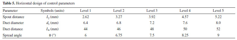According to the parameter combination and level division of Tables 5 and 6, the 625 (5 × 5 × 5 × 5) groups' training data are obtained. The simulation calculates the pump efficiency of the jet pump according to different parameter combinations. The part of simulation results is shown in Table 6.