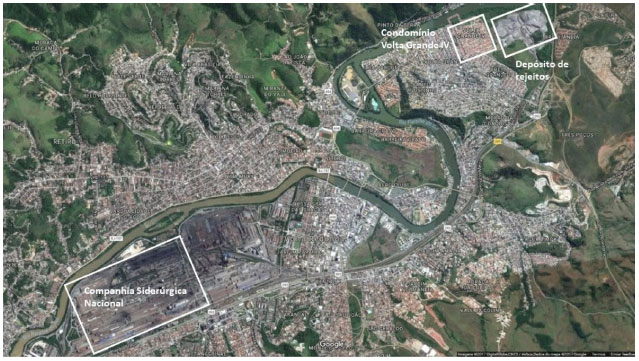 ![]() Figura 1. Disposição espacial do condomínio e as possíveis fontes de emissão de Ni (fonte: Google Earth, acessado em 10/02/2023)
