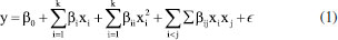 A aplicação de planejamento e otimização de experimentos inclui uma série de etapas consecutivas, frequentemente inicia-se com: (i) estudo de triagem ou varredura, no qual uma grande quantidade inicial de fatores suspeitos de influenciar uma ou várias respostas é reduzida, como também investigar os efeitos principais quanto as interações entre fatores, nesse caso são aplicados os screening design; (ii) construção da superfície de resposta para fornecer dados experimentais, que podem ser baseados em fatores de processo independentes ou em proporções; (iii) modelagem através de ajuste por método dos mínimos quadrados e validação estatística do modelo obtido; e (iv) otimização uni ou de múltiplas respostas, quando um grande número de respostas está envolvido, sendo a função de desejabilidade a ferramenta mais utilizada.15 A seguir fornecemos uma breve fundamentação teórica sobre os planejamentos de experimentos frequentes na química e áreas correlacionadas que podem ser encontrados no aplicativo GAMMA-GUI. Planejamento fatorial completo e fracionário São planejamentos de experimentos úteis na triagem de variáveis e na avaliação preliminar da influência das variáveis no sistema. Frequentemente, a aplicação dessas ferramentas são as primeiras abordagens a serem aplicadas, pois requerem poucos experimentos e permitem um conhecimento amplo do sistema estudado.5 Nesses planejamentos são utilizados modelos lineares para avaliar os efeitos principais dos fatores e as interações entre os mesmos. Através da análise estatística dos dados empregando ferramentas gráficas e ANOVA, é possível checar quais fatores tem influência significativa na(s) resposta(s) avaliadas.15 Nesses planejamentos, geralmente, somente dois níveis (+1) e (-1) para cada fator são avaliados. Entretanto, uma boa estratégia é adicionar pontos centrais (0) ao planejamento para avaliar se existe falta de ajuste do modelo linear, ou seja, é feita uma análise estatística para avaliar se o valor previsto pelo modelo linear para o ponto central é estatisticamente diferente daquele medido experimentalmente.6 Quando a falta de ajuste for estatisticamente significativa, é recomendável o uso de planejamentos que permitam o ajuste de modelos quadráticos. No planejamento fatorial completo, o número de experimentos é dado por n = 2k, onde o número dois indica os níveis e o k representa número de fatores investigados. Esse planejamento permite avaliar a influência das variáveis, porém, o número de experimentos aumenta com o aumento de k. Em contrapartida, no planejamento fatorial fracionário, o número de experimentos é dado por n = 2k-r, onde o r representa a fração de redução de experimentos. Quando r = 1, o número de experimentos será reduzido pela metade, r = 2 um quarto, e assim por diante. Como vantagem há uma redução significativa no número de experimentos, porém, os efeitos dos fatores estarão "confundidos" dificultando a sua interpretação. O emprego e interpretação dos resultados de planejamentos fatoriais fracionários requer maior experiência. Entretanto, para usuários com menor experiência é recomendável utilizar fatoriais fracionários com resoluções mínima IV ou V.1-5 Nos planejamentos de resolução IV os efeitos de segunda ordem estão confundidos entre si, assim esse tipo de planejamento é recomendado apenas para a triagem de fatores. Já na resolução V as interações de segunda ordem se confundem com interações de terceira ordem, esse tipo de planejamento permite uma estimativa mais segura dos efeitos principais e das interações de segunda ordem. Metodologia de superfície de resposta (MSR) O método de regressão múltipla por mínimos quadrados, tem com princípio verificar como os fatores variam em função da resposta: y = f(x) + ϵ com o objetivo de otimização de um processo ou produto.14 Sua utilização consiste na etapa seguinte à triagem, e tem como objetivo modelar uma superfície de resposta aplicando um modelo de segunda ordem.15 Esses planejamentos podem ser aplicados a fatores baseados em valores independentes ou em proporções. Na abordagem baseada em valores independentes (variáveis de entrada) são tratados como valores independentes/não absolutos. Em outras palavras, o foco está na variação desses valores em relação a uma referência ou ponto central. Enquanto, na abordagem baseada em proporções, a ênfase está nas proporções entre os fatores/componentes avaliados, em vez dos valores absolutos. Esse caso é comumente usado em problemas de misturas ou formulação, onde a composição ou proporção dos componentes é a variável de interesse.1,2,5 Embora tais metodologias tenham suas diferenças, ambas têm como principal objetivo a obtenção das condições ótimas através de uma função matemática. As superfícies de resposta podem ser planas (modelo linear), bem como podem ser descritas por um modelo quadrático (Equação 1): ![]() onde y é a variável de resposta, β0 é o termo constante ou intercepto, βi, βii e βij representam os termos lineares, quadráticos e de interação da equação de regressão, xi e xj são os valores dos fatores codificados e ϵ o termo de erro no modelo. Nesses planejamentos os níveis são ≥ 3, e frequentemente, é recomendável realizar replicatas dos pontos centrais (0) para avaliar a falta de ajuste do modelo e para obter uma medida do erro experimental (pure error). Delineamento Box-Behnken O Box-Behnken consiste em um planejamento fatorial fracionário incompleto de três níveis. No planejamento Box-Behnken, os níveis dos fatores estão nos pontos médios das arestas e no centro de um cubo ou hipercubo, sendo que o número de pontos experimentais é dado por n = 2k2 - 2k + PC. Onde PC representa a quantidade de experimentos no ponto central. Como vantagem, nesse planejamento não há experimentos somente com os níveis inferiores e su