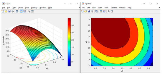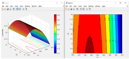 Os demais recursos gráficos serão demostrados nos exemplos adiante. Cabe ainda ressaltar que, nesta demonstração aplicamos um planejamento fatorial completo, porém, o mesmo procedimento pode ser seguido para o planejamento fatorial fracionário, ou superfície de resposta. Metodologia de superfície de resposta (MSR) MSR são ferramentas que fazem o uso de técnicas de regressão múltipla para modelar, analisar e otimizar a relação entre X (variáveis independentes) e y (variável dependente). Na MSR um modelo matemático é aproximado por uma função de segunda ordem, que é uma expansão polinomial que inclui termos lineares, quadráticos e de interação entre os fatores que pode ser usado para prever a resposta em diferentes combinações dos fatores e pode ser aplicada na otimização de uma infinidade de processos e produtos. As principais MSR são: planejamento Box-Behnken, planejamento composto central rotacional e matriz de Doehlert.14 Delineamento Box-Behnken Neste exemplo o processo de hidrólise do amido de arroz para produção de xarope com alto teor de dextrose equivalente (DE) foi otimizado utilizando um planejamento Box-Behnken 33 (link YouTube: https://www.youtube.com/watch?v=3chGfZoGdFg). Nesse estudo foram avaliados os efeitos da temperatura (ºC) (x1), relação enzima/substrato (% m m-1) (x2) e tempo de liquefação (min) (x3) na %DE alcançada (y). Para mais informações, consultar o trabalho de Spinosa et al.23 Seguindo os mesmos procedimentos descritos no planejamento fatorial completo, os usuários necessitam primeiro definir o número de "Fatores independentes", "Pontos centrais" e "Planejamento" a ser utilizado. Nesse exemplo, foi empregado um planejamento Box-Behnken com três fatores independentes e três pontos centrais. Nesse planejamento os usuários têm ainda a opção de gerar a matriz de dados descodificada marcando a opção "Incluir matriz descodificada". Após a definição desses parâmetros, os usuários devem apertar o botão "Box-Behnken", e então uma estrutura de dados chamada "doe_out" será gerada. A etapa seguinte, consiste na aquisição dos valores experimentais de y para cada experimento. Após as determinações experimentais os valores obtidos devem ser inseridos em um vetor y que representa a variável dependente, isto é, a resposta em %DE. Uma das opções para a criação do vetor y é dada na seção anterior. Agora, os usuários devem iniciar a análise dos dados apertando o botão "Analisar/MLR", e então inserir os dados que correspondem a matriz de dados X e o vetor y na interface "MLR" que se abrirá. Optamos por manter os nomes gerados automaticamente pelo aplicativo ("doe_out.matriz" para X e "doe_out.y" para y), porém, os usuários podem criar suas próprias nomenclaturas. Nesta mesma interface, os usuários devem ainda definir os modelos a serem utilizados, que podem ser carregados previamente, ou escritos seguindo as notações de Wilkinson. Nesse caso, optamos por carregar o modelo, para isso, os usuários devem carregar o arquivo "Modelo_Box_Behnken.mat" disponibilizado nos conjuntos de dados para demonstração. Então, um arquivo chamado "modelo" aparecerá no Workspace do Matlab, e esse mesmo nome deverá ser inserido dentro da janela "Modelo*" na interface "MLR", e então apertar o botão "Gerar modelo". O modelo considerado nesse estudo contém todos os termos individuais, quadráticos e de interação. Na estrutura "mlr_out" gerada, os parâmetros de qualidade de ajuste do modelo aos dados experimentais podem ser checados. De acordo com a ANOVA, o modelo demostrou significância, mas falta de ajuste (p > 0,05) a nível de 95% de confiança. Embora o modelo tenha falta de ajuste, nesse caso é fundamental checar o valor do quadrado médio do erro experimental.24 Se o valor do quadrado médio do erro experimental é extremamente baixo, como nesse caso MeanSq de 1,6 × 10-5, é um indicador positivo de um bom ajuste do modelo, porém, os usuários devem ainda verificar outros parâmetros, como os padrões de distribuição dos resíduos, leverage, entre outras opções disponíveis na interface "MLR". Somado a esses fatores, os valores de R2 foram superiores a 94,9% com baixo valor de RMSE. Diante das possiblidades avaliadas e do bom senso, concluímos que, o fato do teste da falta de ajuste significativo pode ser irrelevante neste caso. O gráfico 3D ou superfície de contorno são fundamentais para visualizar o comportamento das variáveis independentes em função da resposta. Embora tais figuras possam também ser geradas para os planejamentos fatoriais, é nas MSR que elas predominam. Para fins demonstrativos utilizaremos as variáveis descodificadas para melhor interpretação dos resultados. Iniciaremos gerando o gráfico 3D apertando o botão "3D", em seguida a interface "Gráfico 3D" se abrirá. Ao plotar a superfície 3D somente duas variáveis podem ser apresentadas simultaneamente, portanto, as demais variáveis devem ser fixadas no mesmo valor. Para estudos com somente duas variáveis independentes não há necessidade de ajuste, mas em casos com mais de duas variáveis independentes, como esse em questão, uma variável deve ser fixada. Uma boa opção é usar a variável menos significativa para ser fixada, cuja significância pode ser visualizada na opção "Pareto", que neste caso foi a variável x3 (Figura 9a). Para uma melhor visualização do ótimo experimental, o ideal é fixar a variável menos importante em seu valor ótimo, para isso, os usuários podem usar a opção "Slice". Usando o gráfico de slice a melhor condição para x3 foi de 20 min (Figura 9b), dessa forma o usuário deve inserir esse valor como máximo e mínimo para x3 no gráfico 3D (Figuras 9c e 9d). A superfície de contorno é gerada apertando o botão "Contorno" (Figura 9e), e pode ser obtida da mesma forma que o gráfico 3D.