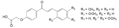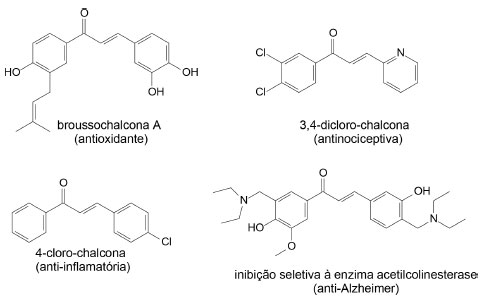 ![]() Figura 2. Estruturas de chalconas com atividade antioxidante, antinociceptiva, anti-inflamatória e anti-Alzheimer6-10