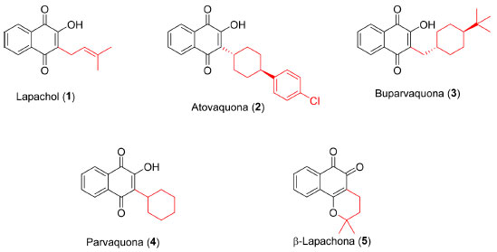![]() Figura 1. Lapachol (1) e fármacos inspirados em sua estrutura