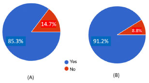 ![]() Figure 1. Results of students’ answers to the first two binary questions of the questionnaire to undergraduate students of the Federal University of Rio Grande do Norte, Brazil about (A) Coulomb’s law (question 1) and (B) its application to organic chemistry (question 2)