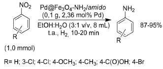 ![]() Esquema 1. Redução de nitrocompostos utilizando Pd@Fe3O4-NH2/amido