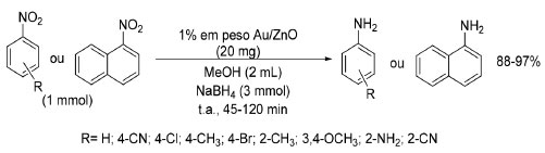 ![]() Esquema 9. Redução de nitrocompostos utilizando Au/ZnO como catalisador