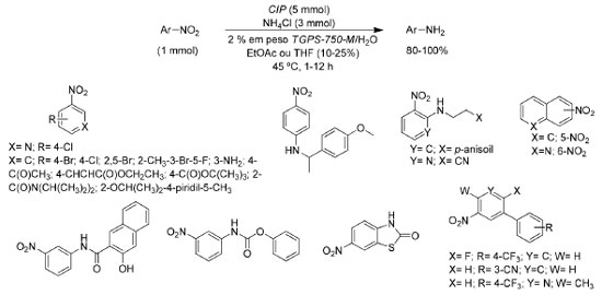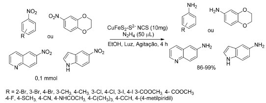 ![]() Esquema 28. Redução de nitrocompostos utilizando CuFeS2 como catalisador