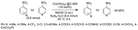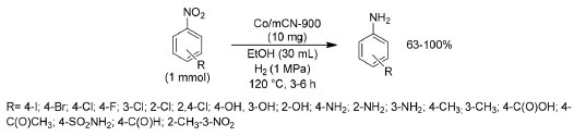 ![]() Esquema 14. Redução de nitrocompostos utilizando Co/mCN-900 como catalisador
