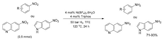 ![]() Esquema 19. Redução de nitroaromáticos empregando Ni-L1 como catalisador