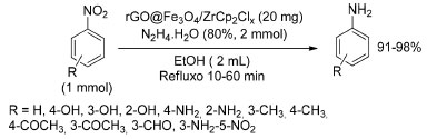 ![]() Esquema 21. Redução de nitrocompostos utilizando rGO@Fe3O4/ZrCp2Clx