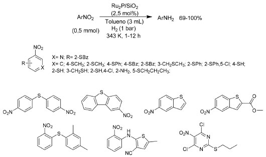 ![]() Esquema 23. Redução de nitrotioarenos utilizando Ru2P/SiO2 como catalisador