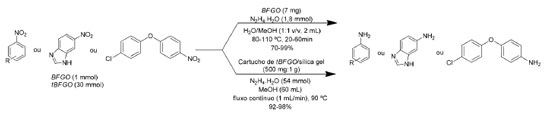 ![]() Esquema 20. Redução de grupos nitro utilizando tmtppa-Zn/DFNS como