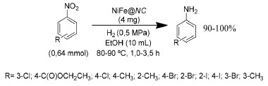 ![]() Esquema 27. Redução de nitrocompostos utilizando NiFe@NC como ca