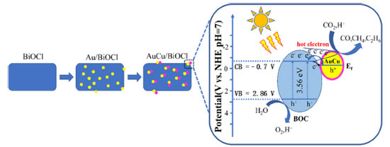 | Bismuth oxychloride nanosheets modified with Au-Cu nanoparticles for efficient photoreduction of CO2 to ethane |