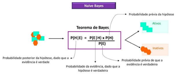 ![]() Figura 9. Representação do algoritmo Naive Bayes, que é baseado na teoria das probabilidades (fonte: elaborado pelo autor)