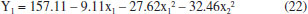 The experimental design results lead to obtaining the mathematical model expressed by Equation 22: ![]() where: Y1 is the enzyme activity (U g-1); x1: temperature (°C); x2: pH. From the mathematical model, a response surface plot of enzyme activity as a function of temperature and pH was drawn and shown in Figure 2.