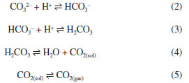 Claudimir Lucio do Lago* Departamento de Química Fundamental, Instituto de Química, Universidade de São Paulo, 05508-000 São Paulo - SP, Brasil Received: 11/10/2023 *e-mail: claudemi@iq.usp.br Carbon dioxide and the related species bicarbonate and carbonate are known for centuries and are deeply involved with modern chemistry knowledge from the beginning. Carbonic acid, by its turn, was intuited more than a century before being synthesized for the first time, which was not obtained, however, without stumbles and mistakes. The equilibrium between HCO3- and CO32- in aqueous medium is free of disputes. However, the interconversion of the other three species is rather controversial. Several papers starting in the beginning of the 19th century until the present days are critically reviewed in order to understand the controversial history of the CO2/H2O system. Finally, experimental evidence and theoretical calculations allow us to place HCO3- as the central species as the conjugate acid for CO32- and conjugate base for two different acids: H2CO3 and CO2. INTRODUCTION Aqueous solutions containing carbon dioxide and related species are ubiquitous. The acid-base properties of CO2 are widely recognized and, in many cases, play a fundamental role in various systems, ranging from the interior of the cells of the most ancient life forms to industrial processes. An examination of a wide range of textbooks and even contemporary scientific articles reveals a well-established sequence of events, which can be summarized as follows: ![]() Rocks and salts containing carbonate or bicarbonate have been recognized for centuries, while the solubility of CO2 in water has also been a subject of investigation and understanding over time. However, carbonic acid, the central species in this scheme, was detected and synthesized only a few decades ago. The lack of proof of the existence of H2CO3 was, therefore, an obstacle to understanding this system, which otherwise seemed quite reasonable: the formation of a diprotic acid that dissociates sequentially until the formation of the ionic species with two negative charges. When solid H2CO3 was finally isolated in the 1990s,1 the doubt disappeared and the puzzle finally seemed complete. While there is indeed substantial evidence supporting the existence of all these species and their interconversion, there is also evidence indicating that this transformation does not unfold precisely as depicted in Equation 1. Despite the simple appearance of this system, elucidating the mechanisms is quite challenging and, in fact, remains a work in progress. Nevertheless, its rich historical background and diverse facets provide valuable material for educational discussions.