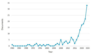 ![]() Figure 1. Worldwide publications of scientific articles on organic electrosynthesis between the 1980s and 2023 (source: Scopus)