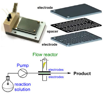 ![]() Figure 3. Syrris® electroflow microflow cell and its components (top) and a generic flow cell in electrosynthesis (bottom). Reprinted with permission from Green et al.31 (copyright (2015) permission from Springer, all rights reserved)