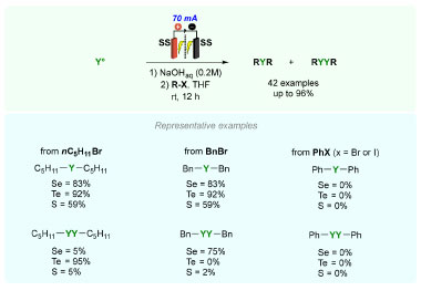 ![]() Scheme 2. Electrochemical synthesis of organochalcogenides