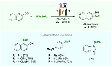 ![]() Scheme 3. Electrochemical oxidative C(sp2)-H bond selenylation of activated arenes