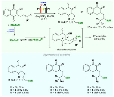 ![]() Scheme 7. Synthesis of selenil-naphthoquinone compounds through an anodic oxidative selenation/cyclization process
